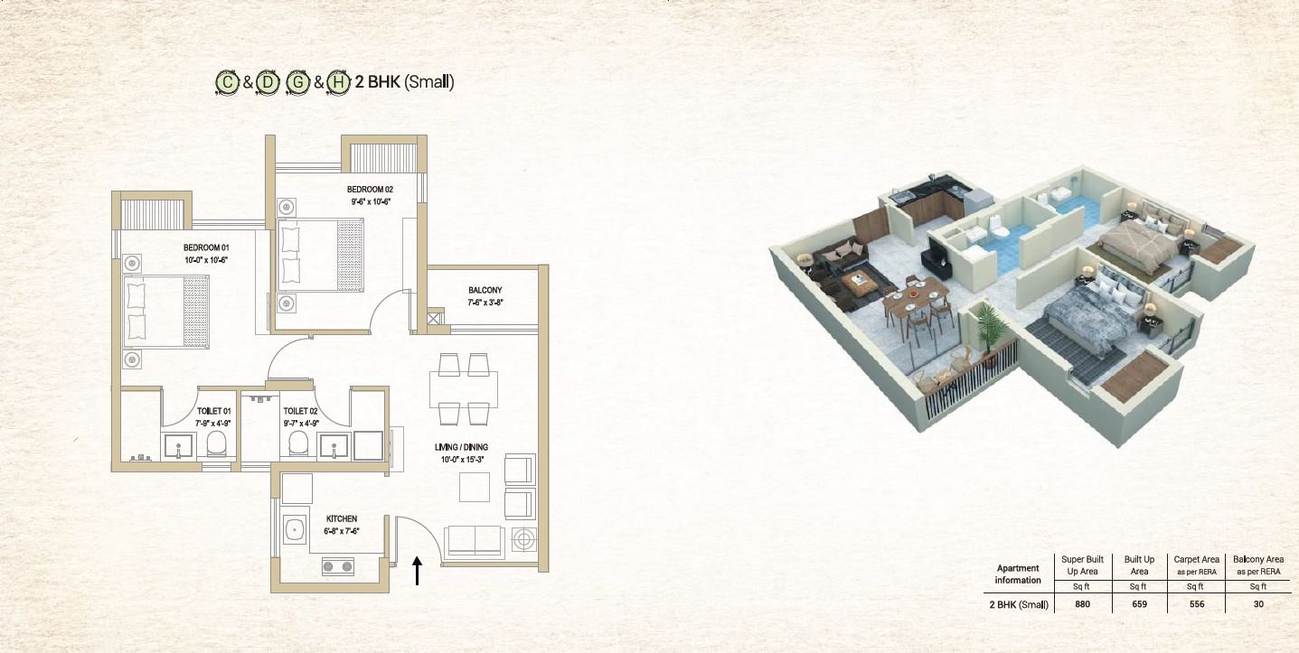 | 2 BHK | 880 | 48 L | 10% |