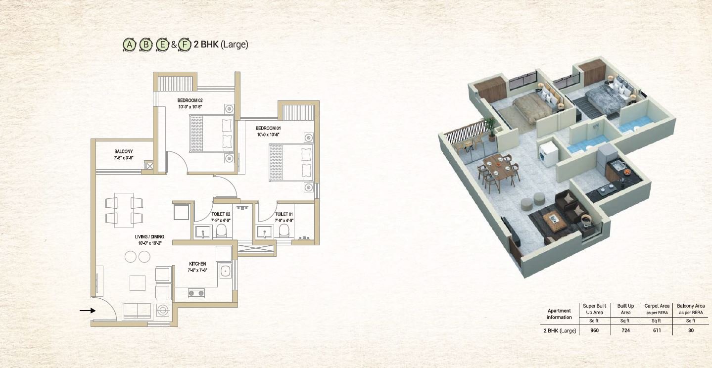 | 2 BHK | 960 | 52 L | 10% |