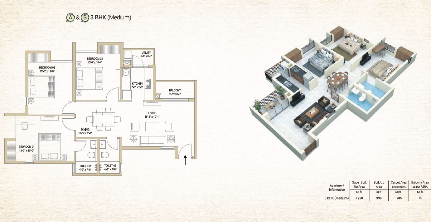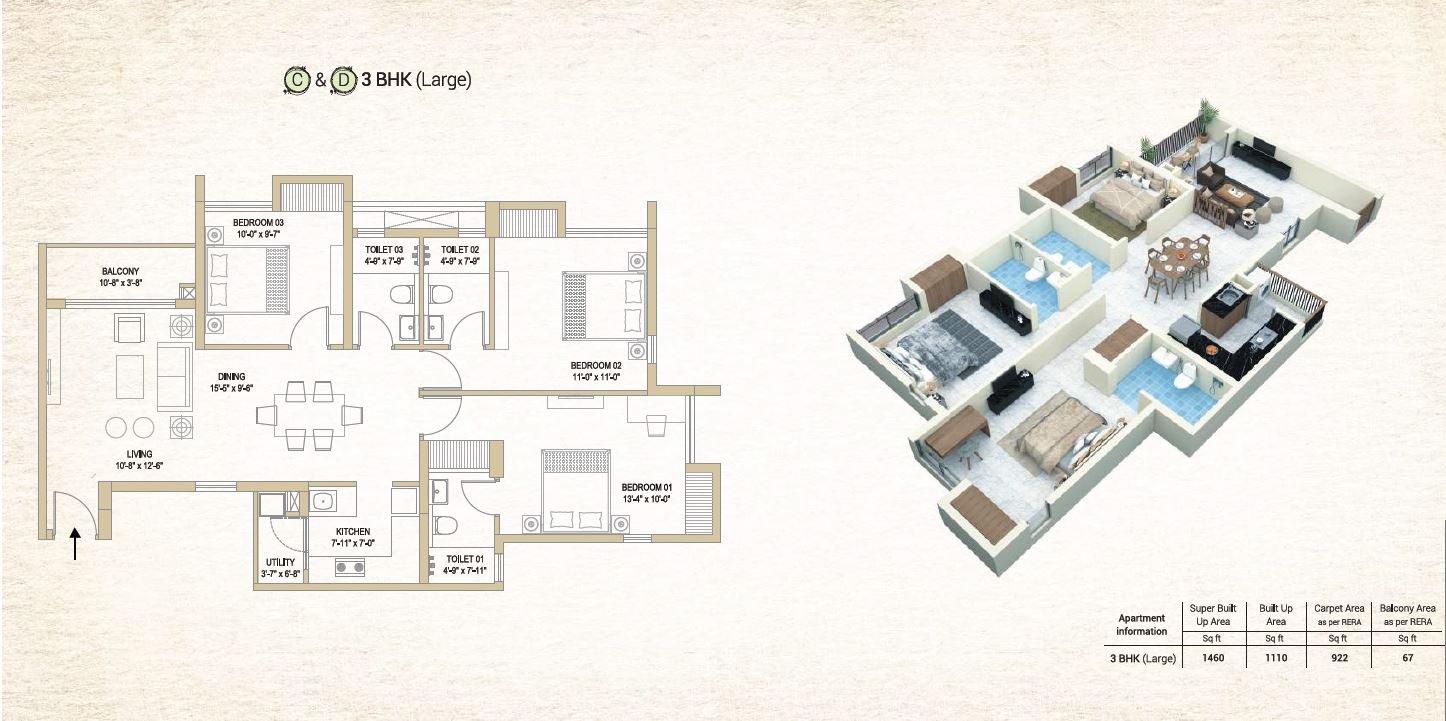 Choose from well-designed 2 BHK and 3 BHK homes (880–1460 sq.ft. super built-up area), each crafted to maximize natural light, airflow, and modern lifestyle needs.