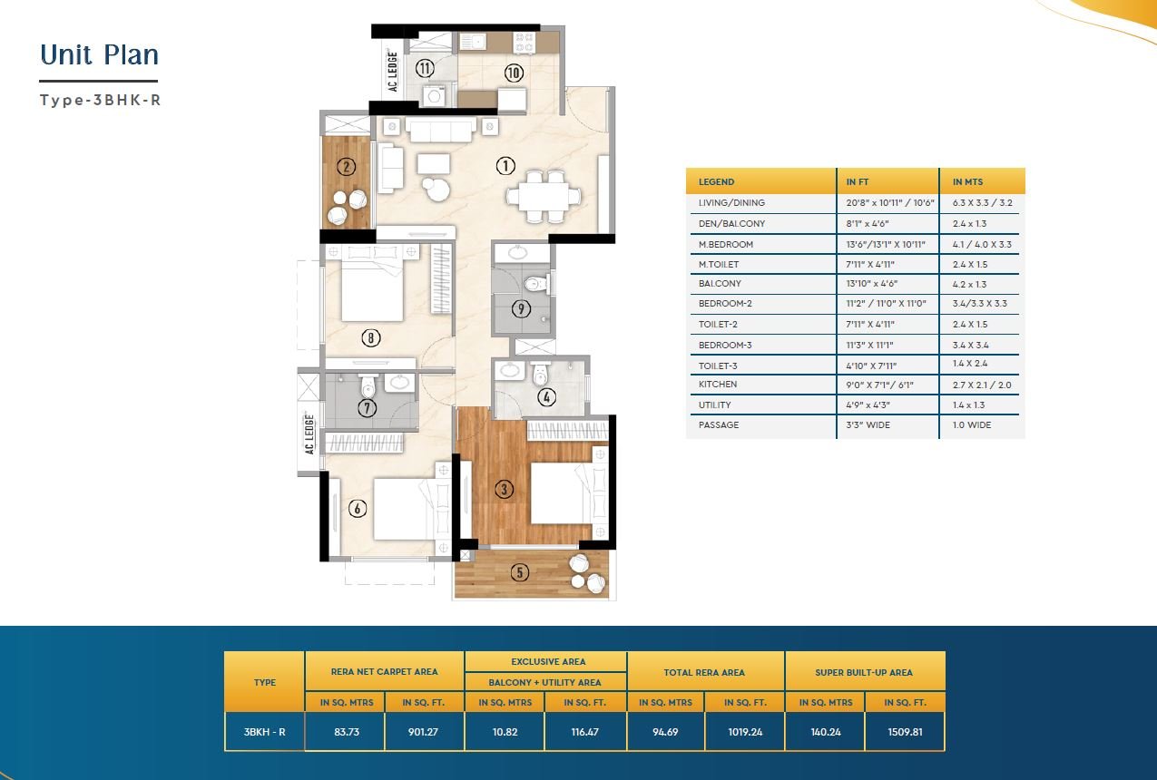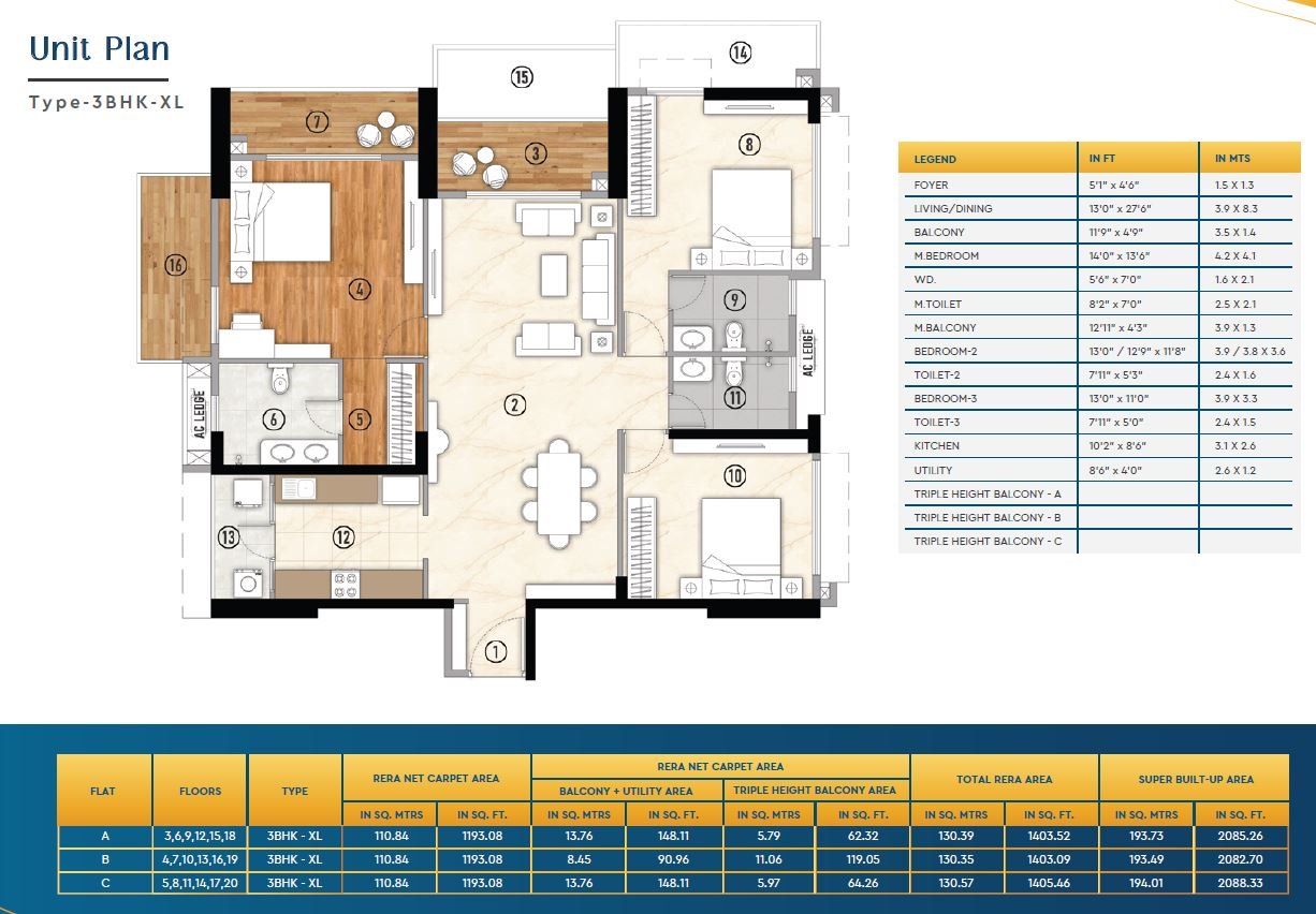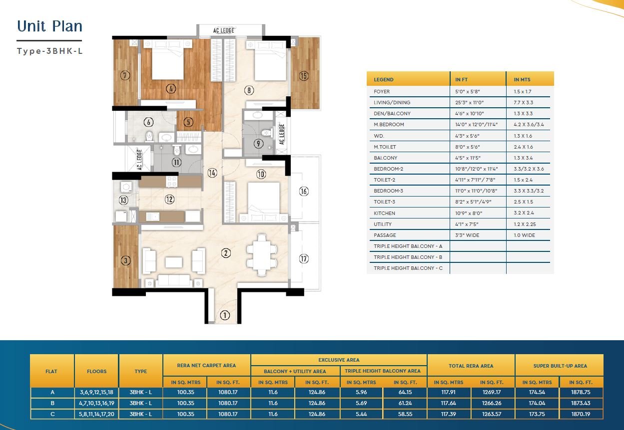 | 3 BHK + 3T | 2088 | 3.20 Cr | 10% |