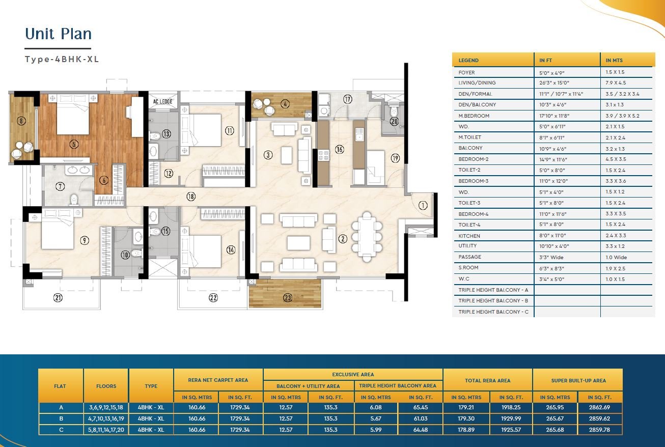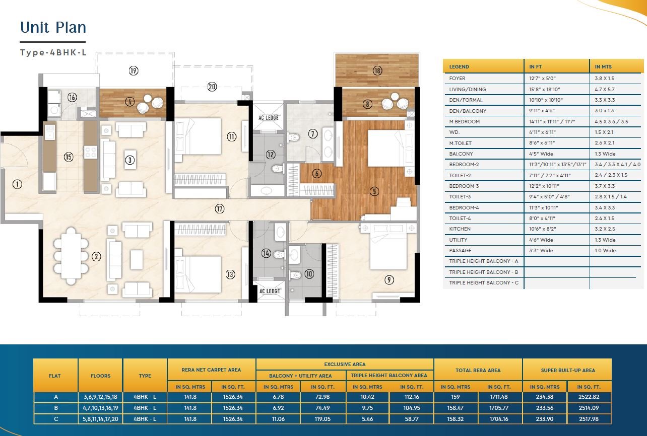 | 4 BHK + 4T | 2859 | 4.40 Cr | 10% |